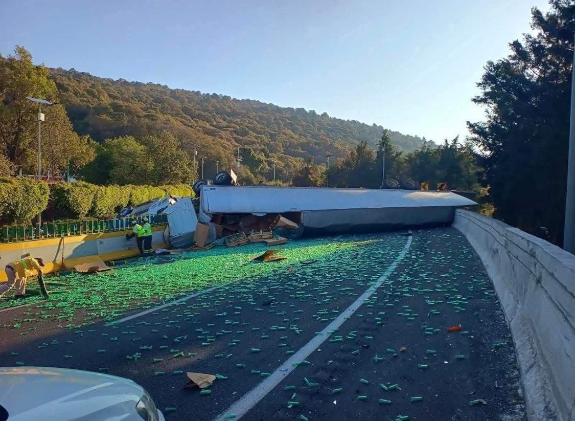 Vuelca tráiler en la México-Cuernavaca; caos vial en “La Pera”